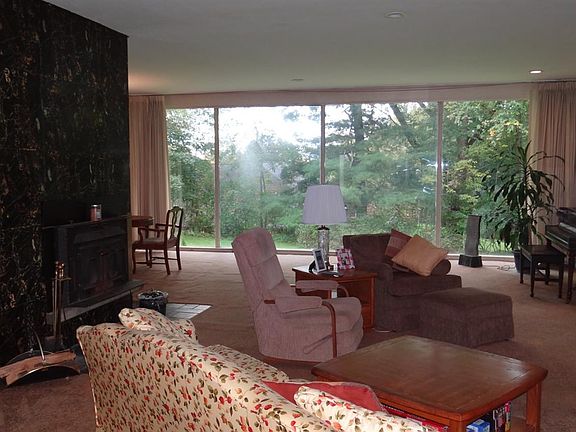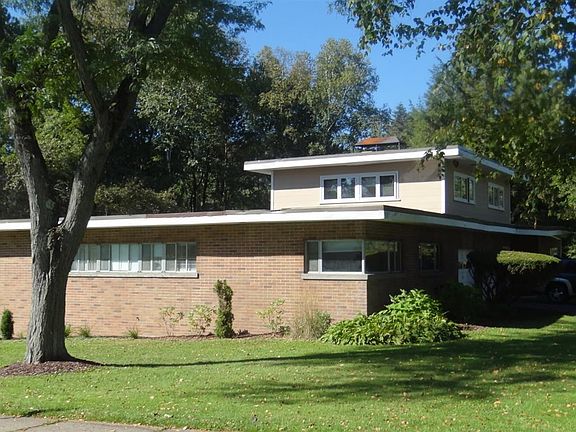 One of a kind Frank Lloyd Wright in the City of Norwich. Four or five bedroom, three full and one half bath brick contemporary house situated on a park-like 1.65 acre lot. The interior is highlighted by huge window filled living room/dining area combo, leading to easy working eat-in kitchen. First floor also features a spacious Master suite with remodeled full bath, ample closet space, and access to back patio. First floor rounded out by two additional bedrooms and guest full bath, as well as a large, bright office area or den. The second floor offers a mother-in-law suite with nice living space, bedroom, kitchenette, and full bath - all modernly updated. The basement offers finished rec space and separate utility area. Beautiful grounds with large private backyard and stone patio off of the kitchen with stone stairwell access to backyard. Unique property, awesome location and setting!