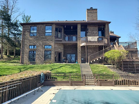 Lakefront property in Mallard Point. Well maintained brick and cedar ranch with: first floor primary suite, new roof, multi level decks, floating boat dock, sunken living room with wood burning fireplace, great lake views throughout the home, den with wood burning fireplace, built-in entertainment center, wet bar, hot tub, in-ground pool, finished walkout basement, ample storage in unfinished basement and many other amenities.