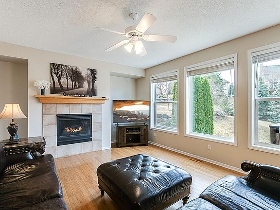 Nestled in the coveted Carver Bluffs cul-de-sac, this classic 2-story home exudes elegance and comfort. Overlooking the serene nature preserve, tranquility awaits within. Step inside to discover a thoughtfully designed floor plan, boasting generous living spaces for relaxation and entertainment. Exquisite craftsmanship by Lundgren Brothers showcases impeccable bamboo floors, vaulted ceilings, and three full bathrooms. The upper level hosts four bedrooms, including a primary suite with a sitting area. Meticulously maintained by one owner, the home boasts new energy-efficient windows, updated lighting, and a spacious walk-out lower level. Ample storage is provided by extra pull-down storage in the garage and potential for a fifth bedroom in the lower level. With fresh paint throughout and a new epoxy garage floor, brand NEW ROOF '24, this home is move-in ready. This property offers all the comforts of Home you've been looking for!