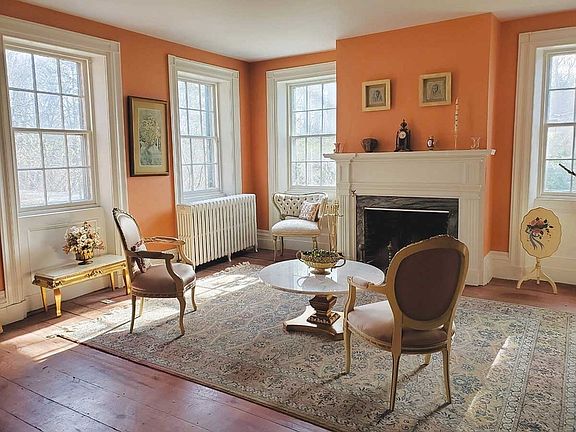 Welcome to the Captain James Parker, Jr. home, built circa 1832. This classic corner chimney hip roof Federal-style home offers gracious lines and plenty of quality living. The bright and airy layout includes formal living and dining rooms, den, family room, space for home offices and a very large country kitchen with center island and granite counters. There are 10 fireplaces and many original details. Updates include recent support columns, 200 AMP electric entrance, city water and sewer, newer kitchen and other improvements. Set on a level private three acres with lawn and gardens ringed by woodlands. A two-story carriage shed offers garage space plus workshop and storage areas. Bring your decorating ideas and turn this home into a family treasure.