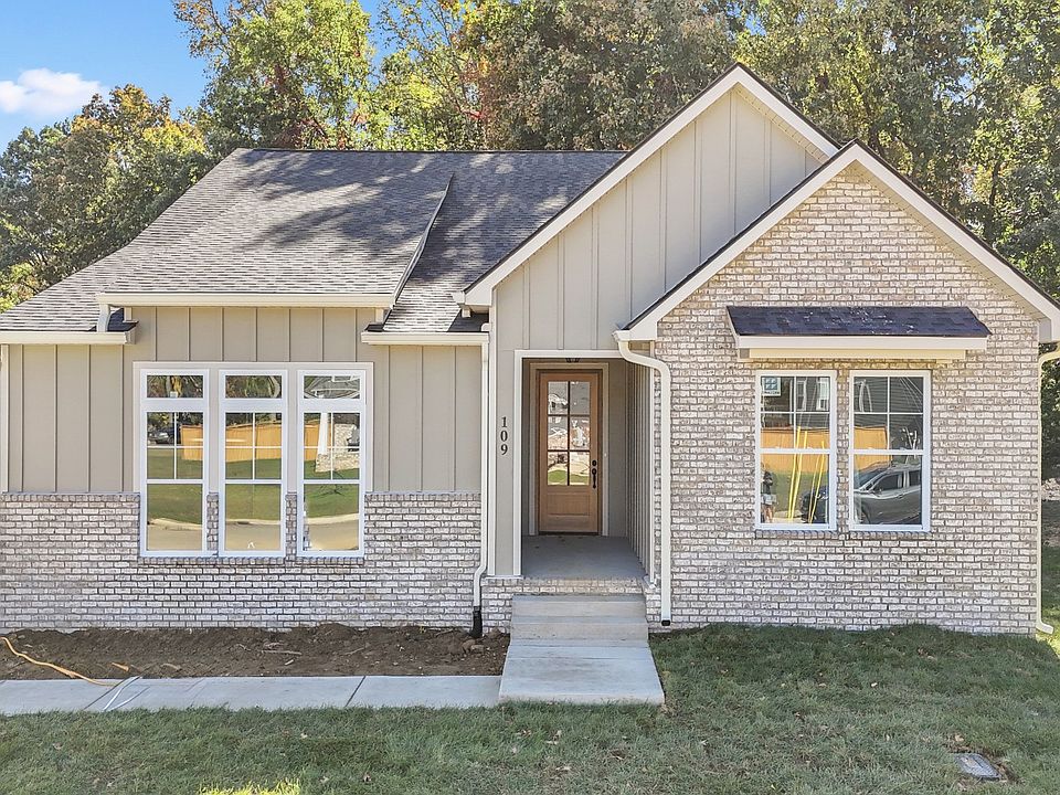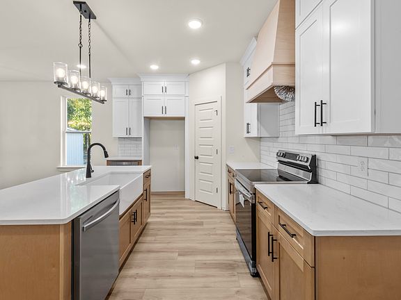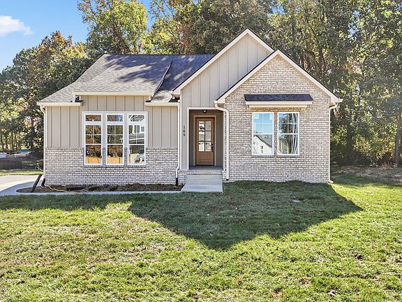 Single-story farmhouse plan on a premium wooded lot! This home features a spacious bonus room and numerous included upgrades. The designer kitchen offers soft-close cabinets that extend to the ceiling, a vented range hood, and an electronic microwave drawer. Enjoy premium comfort and monthly cost savings with spray-foam insulation throughout the walls, plus two separate HVAC units for the main level and bonus room. The home also comes standard with a spray-foam encapsulated, conditioned crawl space. Exterior highlights include side-entry garages with brick and James Hardie ColorPlus siding, which carries a 15-year warranty against fading, chipping, and cracking. Inside, quartz countertops are standard in the kitchen and all bathrooms. The living room features a modern linear electric fireplace, while the primary suite includes hard-surface flooring. A designer lighting package is included, with ceiling fans in all bedrooms, the living room, and bonus spaces. Bathrooms showcase marble-style tile floors and primary suite shower, with an upgraded frameless glass shower door. Enjoy your wooded view from the oversized windows! This home is proudly locally built by Norfleet Builders