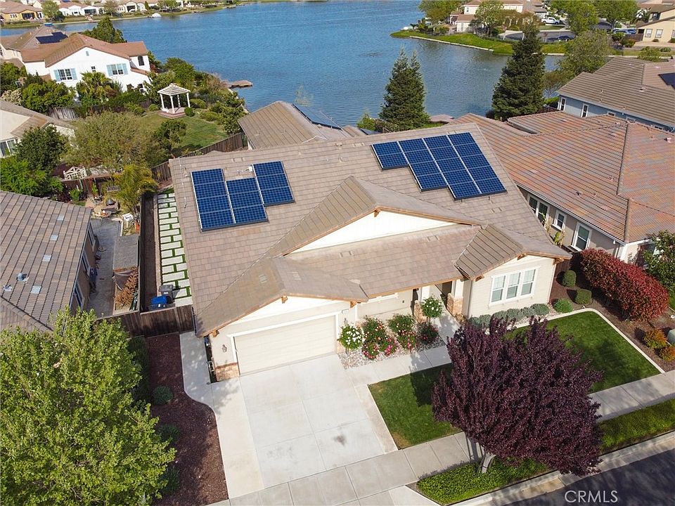 Awaken everyday to a majestic sunrise, glistening over the water and your favorite morning cup in your new home at 109 Clear Lake Ct. Nestled on a quiet, tree-lined cul-de-sac, this stunning 6 bed/4.5 bath residence offers 4191 square ft of spectacular living space on a prime lakefront 1/4+ acre lot, fully equipped with 2 state-of-the-art solar systems and 2 Tesla battery storage walls for off the grid energy independence. This enchanting home, bathed in natural light, is the perfect place to gather with family and friends. Enjoy breathtaking views of the lake from the moment you enter, beckoning you to the serene backyard oasis. The outdoor living space is beautifully landscaped and features an extended covered patio with built in fans and recessed lighting, dozens of lush organic fruit trees, low maintenance green space, and a 2nd deck overlooking the water. There is plenty of room for your own outdoor kitchen, children's play areas, and dog runs for your fur babies. Indoors, opulent multi-generational living and guest space abounds. Downstairs features a bedroom with ensuite bath and generously sized Jack and Jill bedrooms with shared bath. A private corridor leads to your impressive Primary Suite featuring a luxurious ensuite bath, spacious walk-in closet, water views and direct access to your outdoor sanctuary. Communal areas include an elegant Formal Dining Room, a deluxe Chef’s Kitchen featuring Jenn Air appliances and a 6-burner range, large nook and family room that opens to the patio. Upstairs offers a huge bonus room overlooking the lake, 2 additional spacious bedrooms and a shared bath. The 3-car tandem garage with epoxy flooring and finished walls provides lots of space for your cars and toys, a 40 amp/240 volt Tesla charger for your electric vehicle, and a tankless water heater. No more rolling blackouts while you enjoy this opulent lakeside home, taking advantage of the tremendous savings from paid-in-full dual high end solar and battery storage systems. All of this plus the upscale Summer Lake community amenities and facilities!
