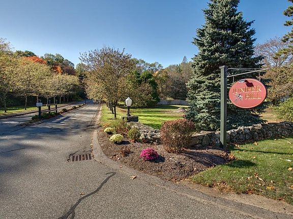 Welcome to Juniper Hill! First unit, with a much coveted farmer's porch, to be offered for sale in 7 yrs! This is the last unit nestled at the top of the hill, with no neighbors to the right or behind. Enjoy ultimate privacy, with all the benefits of being in an over 55 community. Relax & sip your morning coffee, while taking in the stunning views of the Blackstone Valley. The private brick patio is tucked away behind the unit, surrounded by mature plantings & nature. One owner & meticulously maintained. This is considered a "premium site" with the farmer's porch and location in the development. There are so many upgrades and beautiful features, you must make an appointment to see for yourself! *Hardwoods thru out *Natural Cherry Cabinetry *Ceramic Tile in Solarium and Bathrooms *Custom Crafted Built in Bookcase *Gas Log Fireplace *French Doors *Skylights *Custom Light Fixtures *Sought after 2 full baths with easy step in showers *Upgraded Cherry Vanities with Corian Tops*Don't delay!