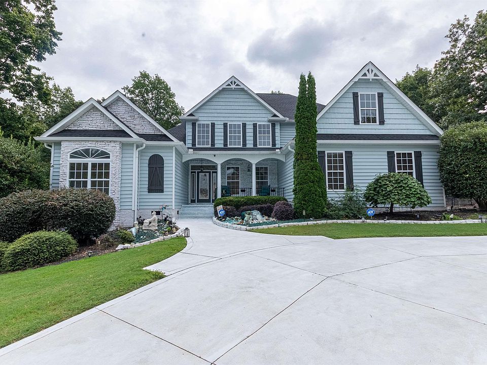 Welcome to 109 Creek Crossing Way, located in the desirable Silver Ridge community of Greer. Nestled on nearly an acre (+/-0.92), this home greets you with a circular driveway, side-entry garage, and a charming rocking chair front porch. Step inside to a spacious two-story foyer that opens to a formal dining room and a large, light-filled great room with soaring ceilings, gas fireplace, and a wall of windows. The kitchen features granite countertops, stainless steel appliances, a center island, closet pantry, and connects to a walk-in laundry. The main-level primary suite offers a retreat of its own with a second gas fireplace, dual sink vanity, walk-in closet, garden tub, and separate shower. A guest bedroom and full bath are also conveniently located on the first floor. Upstairs, you’ll find two additional bedrooms with a Jack-and-Jill bath, plus a versatile flex room. Outdoor living is just as impressive with a screened porch, multiple deck and patio areas, a hot tub, and a sparkling in-ground pool complete with a pool house—perfect for entertaining. Greer Middle College, an award-winning public charter school, and Greenville Tech’s Greer Campus are less than 2 miles away. This location offers the best of both worlds—set in a peaceful, rural-feeling neighborhood, yet just 20 minutes to BMW and GSP Airport, and a short drive to charming small towns or the vibrant downtowns of Greenville and Spartanburg. Come experience the lifestyle this beautiful Silver Ridge home has to offer!