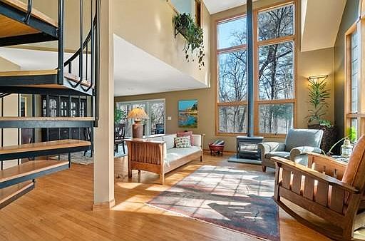 Old world charm meets clean contemporary with this gem in Hamilton. Meticulously detailed interior features 16 foot high ceilings with wood stove in the new living area, a spiral staircase leading up to a cozy loft, and updated custom kitchen. Walls of windows allow for natural light to flood throughout this home. Featuring four bedrooms upstairs with an additional den/office space on the main level. Allow the summer breeze to flow through your master suite with private balcony. Step into the en suite bath and relax in your jacuzzi tub while gazing up through the skylight. Enjoy the view to your outside oasis through panoramic windows looking over the lovely garden. Meandering paths will lead you to hidden areas of solitude in well maintained perennial gardens. Close to all Hamilton has to offer, you wonât want to miss your opportunity to own this home.