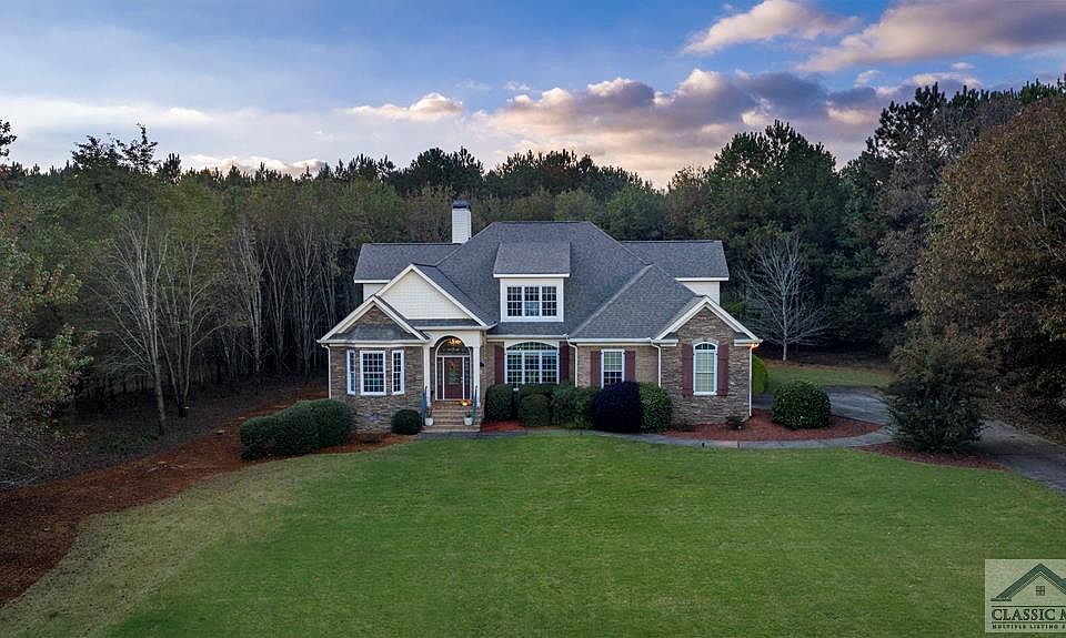Come see this brick beauty in Bogart in the established Deerfield neighborhood. The exterior offers an impressive 4-side brick faade with white accents giving it a classic, timeless feel which overlooks a well-kept front yard. Circling around to the back area of the home you can find a bricked patio and sitting area as well as a screened porch to keep out Georgia's notorious insect friends. The interior features an open, accessible floor plan with tons of high-end finishes that make this property stand out. With a closer look, you'll notice the crown-molding throughout, hardwood floors throughout both floors, built-in shelving framing the gas-lit fireplace, custom tilework in the master bathroom, exposed beams in the office area, double trey ceiling in the master bedroom, and so much more! Master suite is on the main along with another bedroom and bathroom on the main floor ideal for a nursery or in-laws or guests. The upstairs has two bedrooms with two full bathrooms giving everyone in the home plenty of privacy. This home is functional, well laid out, and handsome and won't last long!