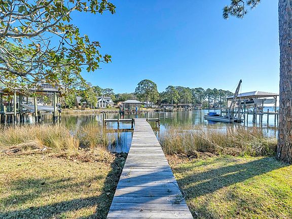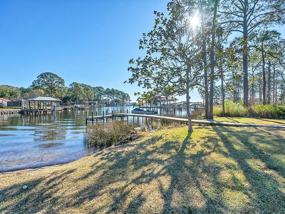 Welcome to this beautifully constructed waterfront home sitting on nearly half an acre in the prestigious neighborhood of Dana and Dolphin Point, listed UNDER recent appraisal! It has been updated with new LVP flooring throughout, stainless steel appliances, fresh interior paint, and new lighting. Wake up to the spectacular view of John Bayou, while watching the dolphins play right off your own dock! You'll love the way the light reflects from the huge stone fireplace in the living room. Don't miss out on this unique opportunity to live your best waterfront life, with NO HOA! Buyer to verify all information deemed important.