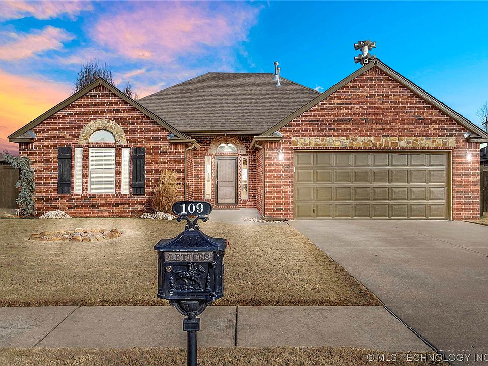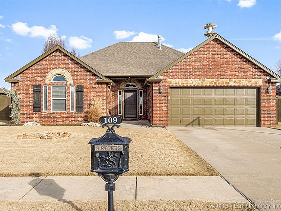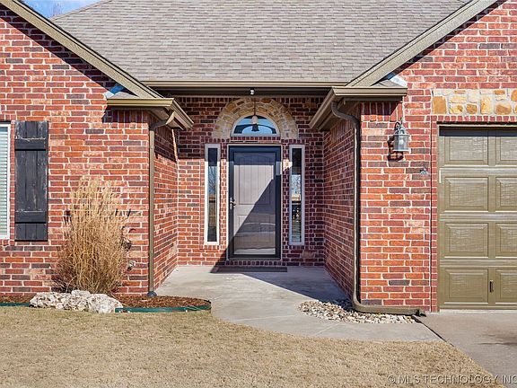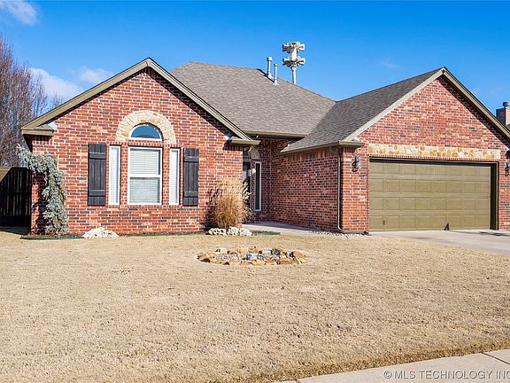 Welcome to your dream home in the heart of a charming Glenpool neighborhood! This spacious three-bedroom, two-bathroom residence, built in 2009, is a perfect blend of modern comfort and classic elegance. As you step inside, you'll be greeted by a sense of warmth and style, with fresh paint adorning every corner of the home, including the garage. The spacious master suite boasts a luxurious tile shower and a unique touch – a penny tile ceiling in the master bathroom, adding a touch of sophistication to your daily routine. The thoughtful design continues with custom closet cabinetry, providing ample storage space while adding a touch of personalized organization. The heart of this home has a well-maintained kitchen, featuring modern appliances and plenty of counter space for culinary enthusiasts. The open floor plan seamlessly connects the kitchen to the living area, creating a perfect space for entertaining guests or enjoying quality family time. Worried about hard water? This home is equipped with a top-of-the-line water softener system, ensuring that your water is always gentle on your skin & kind to your appliances. Step outside to discover the beautifully landscaped outdoor space, complete with a covered patio. The patio construction material is resistant to weather and age-related rotting, providing a perfect spot to unwind or entertain friends. Additionally, an outdoor building is ready to house all your lawn care equipment or serve as a versatile storage space according to your needs. Located in a lovely neighborhood with clean and quiet streets, this residence offers a serene and welcoming environment. Enjoy the convenience of being close to Glenpool and Bixby, ensuring easy access to shopping, dining, and all your needs in town. Don't miss the opportunity to make this meticulously maintained home yours – a perfect blend of comfort, style, and functionality. Schedule a viewing today and start envisioning your new life in this delightful home!