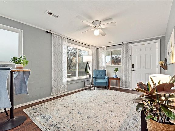Super tidy, low-maintenance little place! Kitchen has been completely remodeled to maximize cabinets and countertops and optimize space efficiency. Tankless water heater, under-the-counter washer-dryer combo, stainless appliances, butcher-block countertops, and live-edge wooden shelves make this kitchen functional and attractive. Outside, you'll find a large concrete parking area, suitable for RV parking or multiple vehicles. The fenced backyard is small and private, with a concrete patio area and a nice shed with electricity. Shed has a section partitioned off for indoor dog space with doggy door to yard. Automatic sprinklers make this lot very easy to care for!