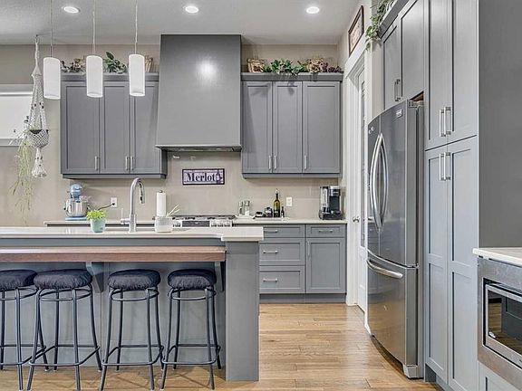 Welcome to a home where thoughtful craftsmanship, timeless finishes, and intelligent design come together in perfect harmony. Located in a peaceful, family-friendly neighbourhood, this stunning McKee-built bungalow offers over 1,400 sq ft of main floor living and a partially finished basement that’s already prepped with drywall, luxury vinyl plank flooring, and Dricore subflooring—ready for your finishing touches. Step inside and be greeted by soaring 10’ ceilings and engineered hand-scraped hardwood floors that create an instant sense of space and elegance. The custom kitchen is truly the heart of this home, featuring painted cabinetry, quartz countertops, a gas stove with a showpiece custom hood fan, built-in wood shelving, and a matching island eating bar. A walk-through pantry offers ample storage and everyday convenience. The open-concept living room includes a cozy gas fireplace and bright windows that flood the space with natural light, while the dining area is accented with a transom window for added architectural interest. With two spacious bedrooms and two full bathrooms on the main floor, this home is equally ideal for growing families or downsizers looking for one-level living. The primary bedroom is a peaceful retreat that easily accommodates king-sized furniture and includes a luxurious 5-piece ensuite complete with double vanity, soaker tub, separate shower, and a generous walk-in closet. A dedicated main floor laundry room adds convenience, and the front-attached garage comes outfitted with a high-end Gladiator organization system—ideal for anyone who appreciates a tidy space. Step outside to a beautifully landscaped and fenced backyard that backs onto a rear lane, offering extra privacy and versatility. Invisible screens on the front and back doors allow you to enjoy fresh air without the bugs, and a Kinetico water system adds another level of comfort and quality. This is a rare opportunity to own a well-built, move-in-ready bungalow by one of the most trusted local builders. Whether you're relaxing at home or entertaining guests, this property offers the lifestyle you've been dreaming of. Don’t wait—book your private showing today and make this stunning bungalow your next home!