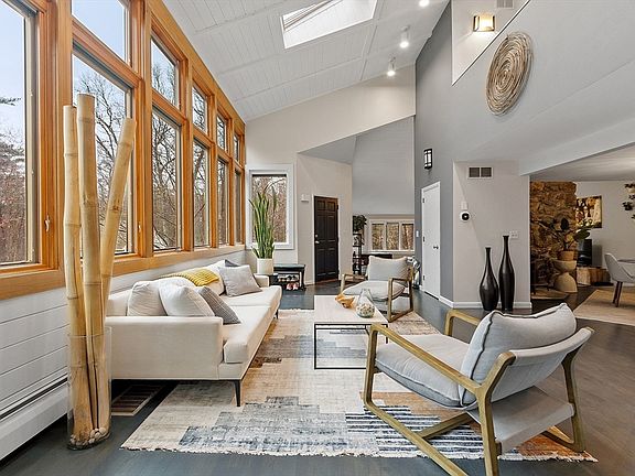 Discover your dream home, nestled on over 3+ serene acres, this exceptional property offers modern updates and natural beauty. The first-floor primary suite features a private deck for peaceful relaxation. With two additional bedrooms, three full baths, and updated kitchen and baths, this home blends comfort and style. The floor-to-ceiling stone fireplace adds a cozy charm, while the newer roof and skylights ensure durability and natural light. The finished basement provides flexible living space, and the large, flat yard invites outdoor enjoyment. A detached barn offers endless possibilities for hobbies, storage, equestrian use and more; while outdoor enthusiasts will love the property’s easy access to trails. Whether you're relaxing indoors or enjoying the abundant outdoor space, this property delivers a unique blend of modern and practicality. Don’t miss the chance to make this exquisite home yours!