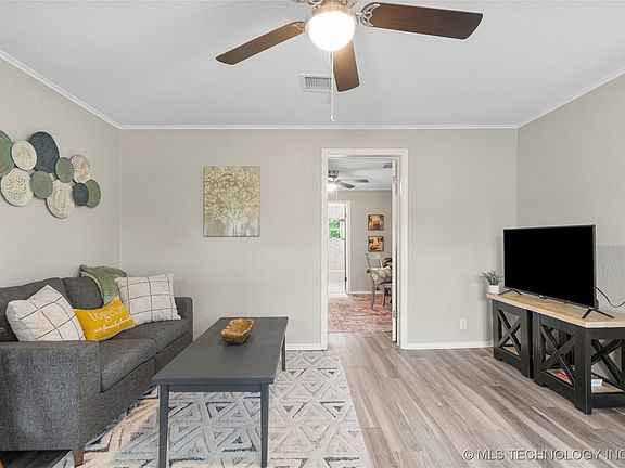 Welcome Home to Sapulpa! This adorable 2 bedroom, 1 bath cottage is completely remodeled in the heart of town. Previously used as a rental this house would be perfect for a first-time home buyer or as an investment. Inside you’ll find every surface has been updated with new luxury vinyl floors, new paint, new fixtures & finishes throughout. Vinyl windows with the tilt out feature. New hot water tank, new PVC/PEX plumbing lines, newer HVAC. The kitchen boasts new cabinets, new appliances & granite countertops. The bathroom is quite spacious with a new tub & tile surround, new vanity & tile floor. Outside you’ll find a large fully fenced yard, 2 car driveway, small shed for storage. The covered front porch is perfect for sitting outside & enjoying the seasons. This charming house is waiting for it’s next story!
