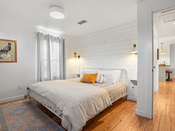 Charismatic 2-bedroom, 1-bath B&B bungalow with 897 sq ft of living space, perfectly situated just a few short walking blocks from Main Street in the Historic District. This updated gem boasts butcher block-style kitchen counters, offering both beauty and functionality, while the original long-leaf pine hardwood floors have been beautifully restored to maintain the home's timeless character. The crisp white bath boasts new tile and a refinished cast-iron tub, exuding classic elegance. Anderson windows flood the home with natural light, and the siding and roof on the carport have been replaced for added durability and peace of mind. Ideal as a cozy bed-and-breakfast or a private retreat, this home combines modern updates with historic charm. The quiet, inviting atmosphere and prime location make it an exceptional find. Whether you're hosting guests or enjoying peaceful living, this home offers an ideal blend of comfort, style, and convenience. Seller states the siding and roof on the carport were updated in 2022. More Information: https://www.adamccarroll.com/listings/109-e-centre-st-fredericksburg-tx/