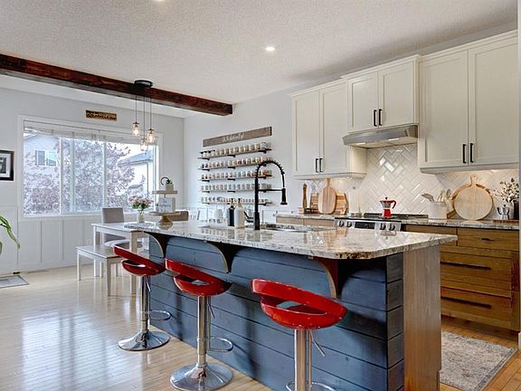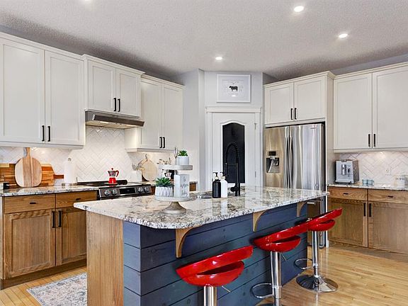 ~Welcome Home~ this stunning two-storey home nestled in sought after Cimarron is situated on a pie lot with convenient alley-access. Offering 4 bedrooms, 3.5 bathrooms, and nearly 3000 SQFT of living this home is sure to impress. Link to video; https://youtu.be/qsThU3LEWL0. The thoughtful design of this space combines functionality, warmth, and style — ideal for growing families or those who love to entertain. The main floor features an open-concept with large sun-filled windows that bathe the home in natural light throughout the day. The heart of the home is the tastefully updated kitchen, featuring newly painted upper cabinets, stylish new hardware, a generous central island, an abundance of counter and cabinet space, and a convenient corner pantry. Just off the kitchen, the spacious great room offers a cozy gas fireplace, while the sunny dining area provides the perfect setting for both everyday meals and larger gatherings. Freshly painted and enhanced with charming board & batten wall detailing, the main level also includes a convenient 2-pc powder room and a functional laundry room with upper cabinets and a folding counter. Upstairs, you'll find four generously sized bedrooms, including an indulgent primary retreat with a luxurious 5-pc ensuite and a walk-in closet. Two of the additional bedrooms also feature walk-in closets, offering plenty of space for family or guests. A spacious 4-pc bathroom adds to the comfort and convenience on this level. The fully developed basement is a true standout — oversized windows flood the space with natural light, creating the feel of a walkout. This lower level includes a large recreation room, a 4-pc bathroom, and ample storage — ideal for movie nights, hobbies, or accommodating guests. Step outside to a beautifully maintained west backyard, perfect for soaking up the afternoon sun. The oversized deck is an entertainer’s dream — great for barbecues, family gatherings, or simply relaxing. The alley access with a gated entry makes trailer parking a breeze, offering both convenience and cost-saving storage. Double attached garage with loads of upper storage and low-maintenance landscaping complete the package. Located just minutes from schools, parks, walking and biking trails, and a wide range of amenities, this exceptional home checks all the boxes! **Notable updates include: (2019) roof, (last 4 years) Painted upper kitchen cabinets and new cabinet hardware,Fresh paint on the main floor, Added board and batten wall detailing, New stove**