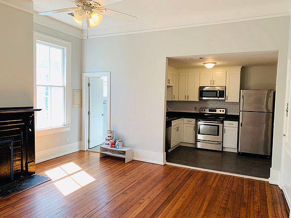 This one bedroom one bath unit is on the second floor of a historic home located in Savannah's Victorian District. The unit features original hardwood floors, historic details and lots of great light. The kitchen has stainless steel appliances including a dishwasher and microwave. There is central heat and AC, brand new fixtures and a front loading washer/dryer included. The property is located minutes from downtown and just steps from Savannah's Forsyth Park, the free bus line, SCAD and more.