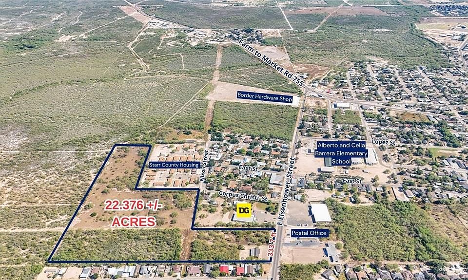 This property is adjacent to platted subdivisions, low income housing, two blocks from North Grammer Elementary School and across the street from the United States Post Office. Subject Property has a 2,184 square foot building (Presently Rented), approximately 333 foot of frontage on Eisenhower Street, a major East-West traffic artery in Rio Grande City. This property is also accessible thru North Corpus Street, off of Eisenhower Street. This property is 6 to 7 blocks west of Flores Street/FM 755, a North-South traffic artery leading to downtown Rio Grande City and the FM 755 Loop. This tract of land is an excellent site for future single family residential and Commercial Development with all the infrastructure located at Eisenhower Street, North Corpus Street and the neighboring subdivisions.