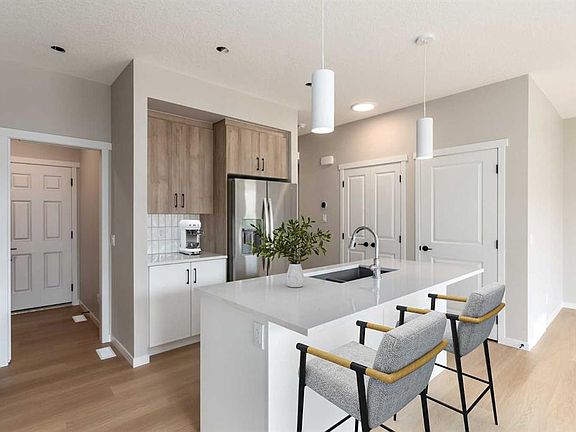 Full landscaping now included! (sod on front and back with mulch on the sides) Ready for immediate possession! This 1705 sq. foot 3-bedroom family home is located on a pie-shaped lot in a quiet cul-de-sac with a West-facing backyard. The main floor of this home has a stunning kitchen that includes quartz counters, an eating bar, stainless steel appliances, built-in microwave, and a spacious pantry. This level also features a convenient main floor pocket office, mud room, dining room, and cozy living room. A beautiful spindle railing leads the way to the upper level that has 3 bedrooms including the spacious primary with a walk-in closet and 4-piece ensuite. Upstairs also a family room and laundry room. The bright and airy basement has a 9’ foundation height. Extras include an added window in the stairwell, upgraded lower kitchen and bathroom cabinetry, upgraded quartz countertops throughout, tile shower in the ensuite, triple pane windows, and an exterior gas line for a future BBQ. Close to walking paths, Montrose Pond, the recreation centre, parks, tennis courts and schools, this home is in an ideal location. Please click the multimedia tab for an interactive virtual 3D tour. Agents please see private remarks