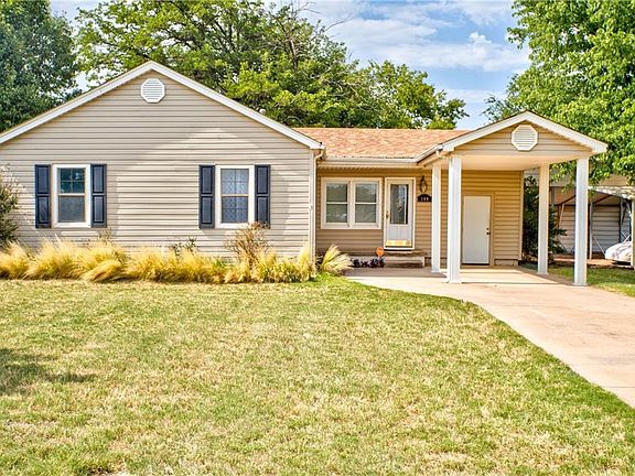 Very nice house with great curb appeal! 3 bedroom, 2 full baths, CH&A and an inside laundry room. All appliances will stay with the house including the refrigerator, washer and dryer. The kitchen features a working island, dishwasher, refrigerator, gas stove, disposal and a built in microwave. The large carport at the front of the house provides covered parking as do the other 2 carports and RV carport at the back of the house. Large open wooden deck on the back of the house. The storage building will stay with the house.