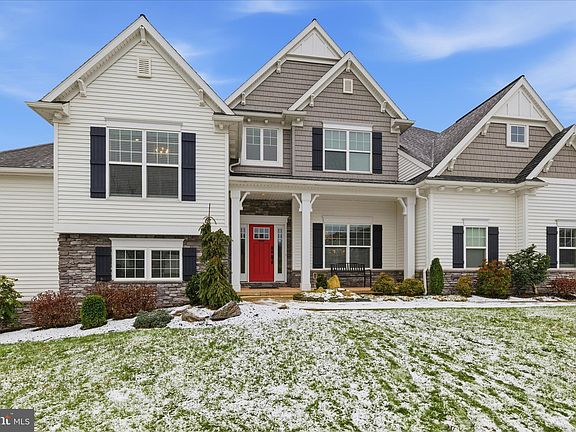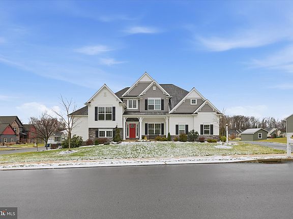 Welcome to this stunning 2 story craftsman style model home, where thoughtful design, elevated finishes, and comfortable everyday living come together beautifully. From the moment you arrive, you will love the inviting front porch with decorative posts, 2 car garage with mudroom entry, screened in deck, and daylight basement, all setting the tone for a home that is as functional as it is impressive. Step inside to a truly grand first impression with a dramatic 2 story foyer and hardwood floors that continue into the elegant formal dining room featuring refined trim work and a coffered ceiling. The open concept main level offers 10 foot ceilings and exceptional detailing throughout, including wide door and window trim, substantial baseboards, rounded wall corners, columned entries, and stylish ceiling treatments. At the heart of the home, the great room with a soaring 2 story ceiling flows seamlessly into the kitchen, breakfast area, and hearth room, perfect for entertaining and everyday living alike. The kitchen is a showstopper with a large island and breakfast bar, Cambria countertops, tile backsplash, stainless steel appliances, and attractive cabinetry with crown molding, plus a corner pantry for extra storage. The adjacent hearth room is a cozy retreat with a gas fireplace and wood beamed ceiling, while the breakfast area opens to the screened in deck and backyard, creating an ideal indoor and outdoor connection. You will also appreciate the private study with French doors and a bonus room, perfect for a second office, playroom, music room, or additional lounge space. The first floor owner’s suite is a true sanctuary, highlighted by a painted tray ceiling with coffered beam detail, a spacious walk in closet, and a spa inspired bath featuring a custom tile shower, freestanding soaking tub, and double vanity. The daylight lower level adds tremendous flexibility and is ideal for multi generational living or hosting guests. It offers a full bathroom with a spacious tile shower, a second kitchen, a huge family room, and a dedicated work out room. This level is the perfect private guest space, game day hangout, or extended living area. Upstairs, a loft overlooking the great room adds even more flexible living space, along with three generously sized bedrooms, two full bathrooms, and excellent closet storage throughout. Low taxes and a fantastic neighborhood make Hawk Valley a desirable place to live, and the location provides a convenient commute to Harrisburg, Exton, Lancaster, and Reading. This home delivers the elevated look of a model, paired with the comfort, layout, and quality that make it easy to live in and love. Showings begin at the Open House Sunday 1/4 - 1PM to 3PM - Stop in and fall in love with this gorgeous home!