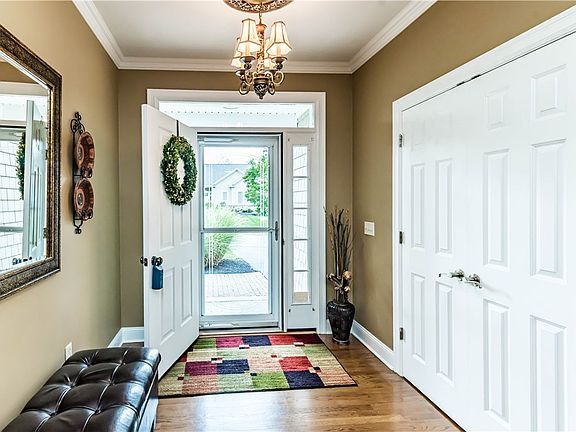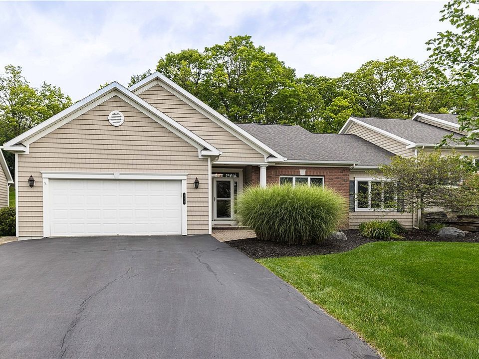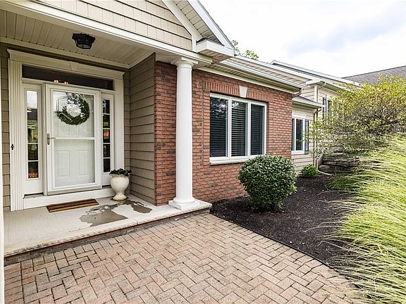 New listing alert! Welcome to your perfect patio/ranch home, located in the Austin Meadows community, just outside the village of Manlius. With 2100 sq. ft. of living space to use, this well-maintained home offers one-floor living with worry-free outside maintenance. The home features 3 bedrooms, 2 full baths, 9 ft: ceilings, and a first-floor laundry room. A large kitchen, with granite countertops and a breakfast bar, is open to the dining area with a slider that opens to the private backyard patio. There are hardwood floors throughout, custom moldings/trim, the dining and living room features a double-sided gas fireplace. The large primary bedroom has a custom-feature wall, an ensuite with dual sinks, a jacuzzi tub, and a separate shower. The basement is waiting to be finished with high ceilings and rubber flooring under the fitness and craft areas. The home is conveniently located close to shopping and dining.