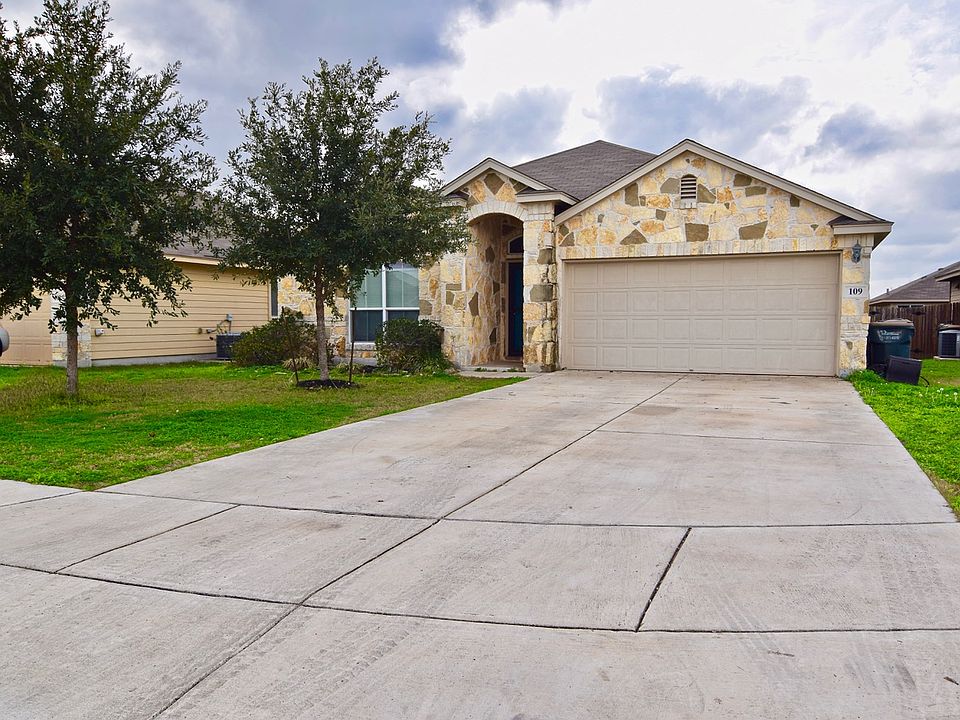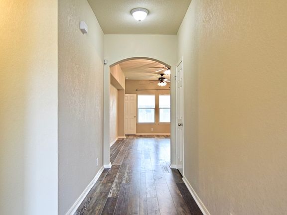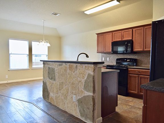 Clean and bright 3 bedroom, 2 full bath home on cul-de-sac street. 2 car garage with automatic opener. Fence backyard with covered patio. Wood laminate floors and rock accents give this home a fresh, updated feel. Kitchen opens to living. Refrigerator and microwave included. Master bedroom has tons of window light, HUGE walk in closet, soaking tub & double vanity sink. Faux wood blinds and ceiling fans throughout. Community is minutes from IH35! Tenant responsible for $20/MO utility and maintenance program. $150 admin fee due upon acceptance of application. Lease to end June or July 2026.