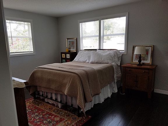 This 2 bedroom 2 bath mobile home sits on the perfect xtra large private lot. The deck in the back is perfect for entertaining and bird watching. We renovated this home in 2020 to include new windows and doors, remodeled kitchen with custom butcherblock countertops, stainless appliances and so much storage you will have empty cabinets. Both bathrooms have been remodeled, new super effecient Mitsubishi mini split with 3 heads were added in 2021, new insulation and drywall, fresh paint inside and out. Impact bahamma shutters are the real deal and were installed a few months ago. This home is handicap accessible. There is a 12 x 16 shed with power for additional storage and hobbies. Village Glen is a small quiet adult park. They do require background and credit check. Lot rent is 658. Village Glen is a beautiful, 55+ manufactured home community located in Melbourne, Florida. Our minimum age requirement for residents is 40 years old. Featuring spacious lots nestled amid a small forest of trees and flowering plants, Village Glen is a tranquil oasis with all the exciting amenities that you expect from an active manufactured home retirement community. Easily accessible to great shops, restaurants, malls, golf, and the numerous beautiful beaches of Melbourne, Village Glen’s location can’t be beat. With a well-equipped workout room, one of the largest solar heated pools in the area and only 143 home sites, the intimate environment is matched only by the fantastic amenities.