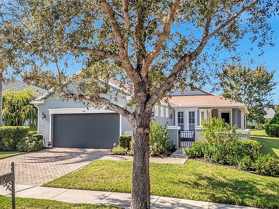 WHAT A BEAUTY IN THE BEAUTIFUL COMMUNITY OF CASCADES/TRILOGY A 55+ COMMUNITY. This home has it all with three bedrooms, two bathrooms, 1780 square feet and a two car garage. As you walk into the foyer the home has a beautiful open floor plan that features a living room, dining area, kitchen and breakfast nook. The living room is very bright with natural lighting, speakers, tile and seamless sliding glass doors that open up to the enclosed lanai that is under heat and air. The kitchen has granite countertops, gas range, stainless steel appliances, tile, cherry cabinets with crown molding, pendant lighting, cam lighting, breakfast bar and a walk-in pantry. The laundry room has washer, dryer, tile and cabinets. The Primary Bedroom has a ceiling fan, lots of natural lighting, blinds, tile and huge walk-in closet. The Primary Bathroom has dual sinks, drawers, vanity, huge shower, linen closet and a water closet. Bedroom two has carpet, large closet and a ceiling fan. Bedroom three has a ceiling fan, crown molding, tile and a closet. The lanai has windows, tile and is under heat and air. The exterior front features a beautiful brick paver patio for all of your outside lounging. The exterior of the home has beautiful landscaping, great curb appeal and solar panels to help reduce energy costs. The community features the beautiful Magnolia Clubhouse that has a beautiful indoor and outdoor pool, pickle ball, tennis courts, shuffle board, fitness center and a community restaurant. Don't miss this opportunity, make your appointment today.