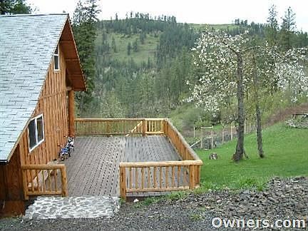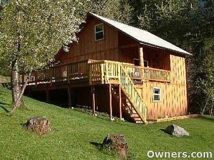 Single Family Home for sale by owner in Harpster, ID 83552. Beautiful cozy home on 4.55 acres near Grangeville Idaho This beautiful home was custom built in 09 and is located along hwy 13 between Grangeville and Kooskia Idaho, one mile from Harpster and the Clearwater River. Features 1,180 sq. ft. of living space, with opened kitchen, living dining area, 2 rooms downstairs, large loft/room, small cubby room and attic upstairs, two bathrooms, laundry rooms on both levels, mud room entry down stairs, wood stove and electric heat, lots of alder custom kitchen cabinets, hardwood floor, 6x12 covered porch, 14x26 ft deck with log rails, built and designed for an easy addition, year around stream running through the property, new 12x20 storage building, large front yard, multiple fruit trees, large fenced garden spot with excellent soil, 2 water systems leveled pad ready for shop, abundant wildlife and more.