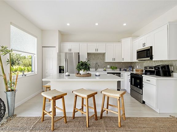 Welcome to Placid Lakes! This 2023 built home has 3 bedrooms, 2 bath and combines modern design with a split floor plan. The open-concept layout showcases 10-foot ceilings, recessed lighting, and vinyl plank flooring throughout. A spacious living and dining area connects seamlessly to the kitchen, complete with quartz countertops, an oversized island, stainless steel appliances, abundant cabinetry, and pantry, perfect for both cooking and entertaining. The private primary suite features two closets (including a walk-in with custom shelving), dual sinks with a lighted mirror, a soaking tub, and a separate glass-enclosed walk in shower. Two additional bedrooms and a full bath are thoughtfully positioned on the opposite side of the home, ideal for guests or family.