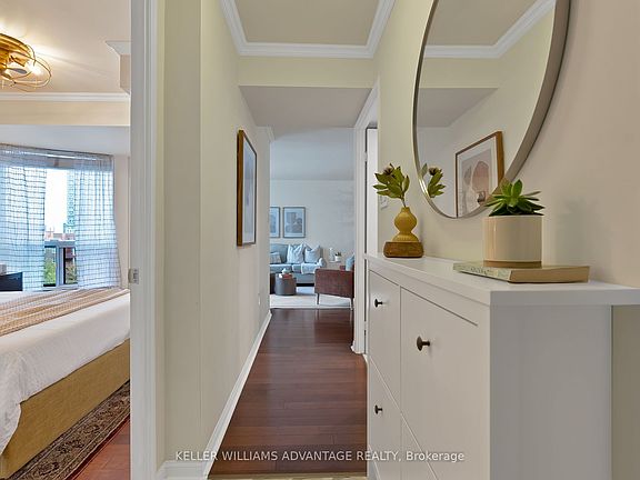 Thoughtfully renovated and blissfully quiet, this one-bedroom oasis in the sought-after New York Times Square Building is perfectly situated in the heart of Old Town Toronto - steps from the historic St. Lawrence Market, the Distillery District, world-class dining, boutique shopping, and everything downtown has to offer, with a perfect Walk Score of 100.Inside, discover a bright and functional open-concept layout that seamlessly connects the kitchen, living, and dining areas - perfect for entertaining. Large windows fill the home with natural sunlight, creating a warm and inviting atmosphere. The modern kitchen features thoughtful storage solutions, including a hidden spice cabinet, sleek cabinetry, and tucked-away laundry for a clean, streamlined look. Renovated in 2021, both the kitchen and bathroom showcase quality craftsmanship and style. Retreat to your spa-inspired bathroom with heated floors and a towel warmer - a luxurious touch that makes everyday living feel indulgent. Enjoy the rare luxury of facing a peaceful side street while being surrounded by the best of downtown. Residents also have access to exceptional amenities, including a rooftop patio that BBQ dreams are made of, a gym, sauna, yoga studio, large party room, 24-hour concierge and security for ultimate peace of mind. Parking and locker included. With Union Station, TTC, the DVP, and Gardiner Expressway moments away, this home offers effortless connectivity. Whether you're seeking a serene city oasis, a stylish pied-à-terre, or a smart investment property, this exceptional residence combines sophistication, comfort, and convenience in one of Toronto's most coveted neighbourhoods.