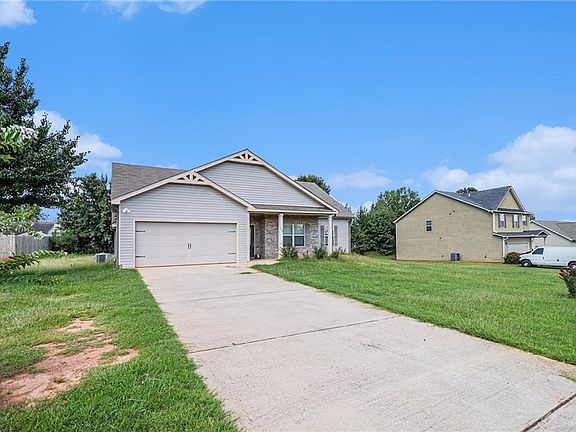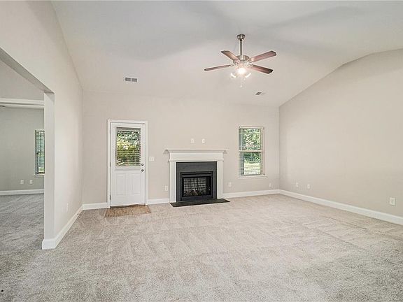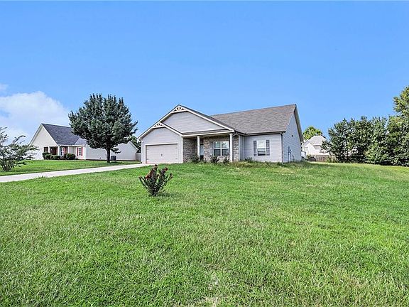 Welcome to this charming 3-bedroom, 2-bath ranch-style home offering 1,719 sq ft of comfortable living! Step inside to an open-concept layout where the kitchen flows seamlessly into the living room—perfect for everyday living and entertaining. The cozy fireplace adds warmth and ambiance, while the separate dining room provides a view of the backyard. The kitchen features sleek all-black appliances for a modern touch and easy, smudge-free maintenance—a true kid-friendly zone! Retreat to the spacious owner’s suite, complete with a tray ceiling, large walk-in closet, and a luxurious en suite bath featuring dual sinks, a soaking tub, and a separate shower. Enjoy outdoor living on the covered patio, ideal for seasonal gatherings. With no HOA and the convenience of a single-level ranch design, this home checks all the boxes for comfort, style, and functionality.