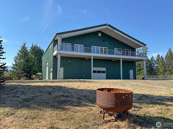 Welcome to your dream compound—where rugged utility meets refined design. The 4,200 sq ft insulated steel shop features two car bays, four 14-ft doors, a safe room, ¾ bath, and radiant heated floors. Set on fully fenced, level parcel with generous parking and nearby the Olympic Discovery Trail. The apartment offers hand-scraped wood floors, concrete countertops, a wood stove, ductless heat pump, and large covered deck with water view. Included extras—1,000-gallon propane tank, gas torch, compressor, workbench, racks, ladders, table saw, riding mower with cart, generator, scissor lift, and 1-ton gantry crane—make this turnkey compound ideal for collectors, mechanics, and fabricators. Infrastructure like this is rare and costly to replicate.