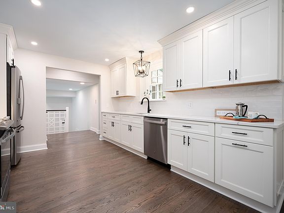 In highly desired Carrcroft on a quiet street, your fully renovated move in ready home is here. The home has been renovated from top to bottom with premium choices including a large gourmet kitchen with beautiful soft-white on trend soft-close cabinets, pull out trash cans, roll out shelf pantry and under island cabinetry! Appliances are primarily GE including a gas stove with griddle cooktop. The designer went the extra mile and included a full vented hood and a tucked away slide out microwave. The countertops are premium Cambria quartz. Incredible lighting throughout with both recessed and chandelier/pendants. The kitchen opens to 3 rooms! One room could be used as a family room or formal living space or even dining room. Another room has a direct entrance from the garage and the concept is a dining room or playroom. That room is separated with beautiful glass "barn" doors to allow privacy for a quiet office graced by the back of the stone fireplace. On the other end of the kitchen you'll also find a recessed family room with high ceilings and a beautiful "chippendale" style bannister. On this main level a back entrance from the deck accesses a mudroom, laundry closet and powder room. Going up the stairs, notice the elevated ceiling with the incredible chandelier to light your way. To the left is a bedroom that will make a guest suite for guests who never want to leave or a "junior" suite with it's en-suite bathroom with shower/tub and walk in closet. Down the hall is the 2nd bathroom with shower directly across from the middle bedroom. At the end of the hall, the designer combined a small room with a larger one to add a 3rd bathroom and create an amazing primary suite. With plentiful lighting, a large custom walk in closet by Container Store and a beautiful marble bathroom, the new owner of this home will have everything they need for a comfortable night's rest. Ceiling fans are provided in all bedrooms and the middle bedroom accesses a walk up attic with planked floor for great storage. There's even a cedar linen closet in the hallway! The basement is unfinished but large, has an egress door and is freshly painted for great workshop and storage space. The wiring of the home has been mostly replaced and includes a NEW electrical panel. Brand NEW hot water heater and TWO zones, Brand NEW HVACS, all electric. Virtually all windows and doors are brand NEW! NEW roof! But that's not all! The 2 car detached garage, built by the Amish is brand NEW and includes a pull down ladder to plentiful storage, lighting and electricity! More storage in a small storage shed attached to the house. In addition you can park at least 4 cars, if not more, in the driveway. Professionally landscaped this home has the appeal of an old stone home with modern conveniences. You must come see this house today and envision how you would use all the spaces in this beautifully renovated home. You have nothing to do but move in! Virtually everything is brand new! Make your showing appointment today! Seller is a licensed Delaware Realtor.
