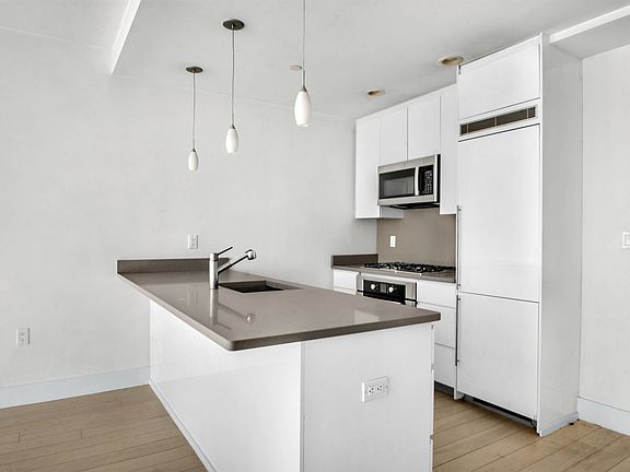 LARGE, LUXURY 1-BED IN DUMBO/VINEGAR HILL! Tons of natural light floods this large and beautifully designed apartment. White oak floors give the space an open, airy feeling. The full, corner kitchen features white cabinets, including built in dishwasher, refrigerator and freezer, and opens into a large living room, perfect for entertaining. The bathroom is also beautifully finished and includes a full soaking tub. Apartment 6C includes an in-unit Bosch washer-dryer. Building amenities include a gym, parking lot, bicycle room, private storage, elevator, and roof deck with sweeping views of the Brooklyn and Manhattan skylines. Located where DUMBO meets Vinegar Hill and close to all the attractions that make this one of New York's most desired neighborhoods. Enjoy the amazing views from several nearby waterfront parks, explore the historic cobblestone streets, workout at the iconic Gleason's Gym or Lifetime Fitness, or shop at Wegman's. Just a couple of blocks from the York Street F and a short distance to the High Street A and C Pets Welcome No Fee