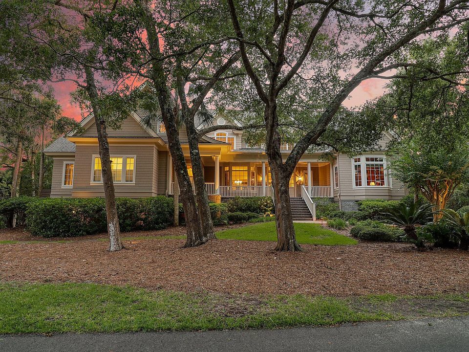 Kiawah Island Club Golf Membership opportunity available with this beautifully appointed 5 bedroom, 5.5 bath home, a 10-minute walk from the beach, with golf and lagoon views, on Goldeneye Drive, one of Kiawah's most sought-after areas because of its proximity to the 10-mile Kiawah beach. Built on a .66-acre lot, the 6106 SF home, has an abundance of space, exceptional finishes, an elevator, and a garage level area that can accommodate at least 4 cars, bikes, and other toys.The large foyer welcomes you into a warm large living room with coffered ceilings, a fireplace, oak flooring, and wall to wall doors that let in light and lead to a deck that runs the length of the house. The deck has space for a pool because it was originally designed to accommodate one.To the left of the foyer is a formal dining room with wainscot panels. The butler's pantry with a full sink, wine cooler, dishwasher, refrigerator, and plenty of cabinets for all your China, is located adjacent to the dining room. Also, on this side of the house, is a casual dining area, which opens to the kitchen. This room can be made into a casual sitting/TV room since the kitchen is large enough to accommodate a table. The screened porch can be accessed from the kitchen. Down the hall is a pantry, the powder room, the laundry room, and the office with access to the screened porch. The office can easily function as a 6th bedroom. On the right side of the entrance foyer is a den/media room with beautiful wood paneling, built-ins, and a fireplace. Past this room, down the hall, is the very private primary bedroom suite, with a sitting room and fireplace, walk-in closets, dressing table, and large marble bathroom with a spa tub, a large multi-head shower, double sinks, and bidet. The staircase off the front foyer, leads to the second floor with an additional sitting room and a fun playroom for the children or a media room for adults. On the second floor are four (4) additional bedrooms each with a private bath and lots of closet space. There is also unfinished space off the two end bedrooms.