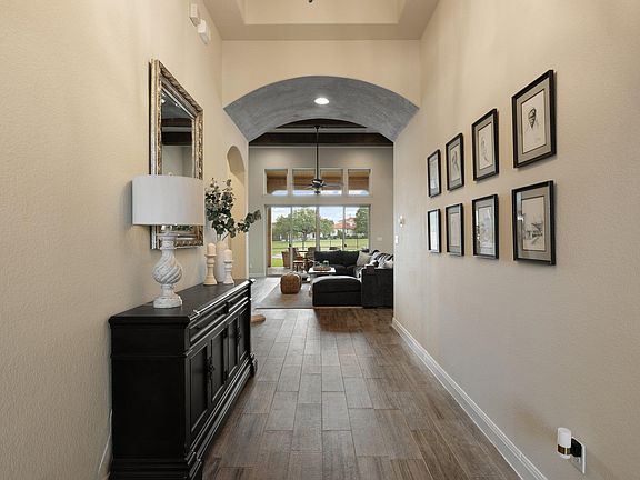 Nestled in the sought-after Cimarron Hills community of Georgetown, TX, this exquisite 3-bedroom, 2.5-bathroom home offers an unparalleled living experience with a seamless one-level layout. Bathed in natural light, the spacious living area features a wall of windows that provides stunning views of the 13th fairway, inviting both serenity and beauty into your everyday life. With soaring beamed ceilings and an open-concept design, the home feels both expansive and welcoming. The chef’s kitchen and living space flow effortlessly together, highlighted by wood-grain ceramic tile flooring that keeps the home cool and stylish. A striking cast-stone, wood-log gas fireplace with a lighter creates a cozy focal point for the living area. The generous primary suite serves as a true retreat, offering high coved ceilings, oversized windows, a luxurious soaking tub, dual vanities, and a distinctive design that adds to the home's charm. The custom-built dresser in the walk-in closet is an added bonus for ultimate organization. Two spacious secondary bedrooms share an updated full bathroom, and a guest half-bath offers convenience for visitors. The third bedroom is versatile, ideal for use as a home office, den, or additional living area. Throughout the home, plantation shutters add both style and privacy. Make your way outside to enjoy the private backyard oasis, complete with a covered patio, outdoor kitchen, BBQ, and ceiling fan—perfect for relaxing and entertaining. A stone pathway leads directly to the gate, offering easy access to the golf course green. Additional amenities include a water softener and a security system, providing peace of mind. This home combines functionality, style, and location in one spectacular package, making it a must-see in Cimarron Hills. Experience the amazing community amenities aside from the golf course such as a pool, sport courts, and clubhouse!