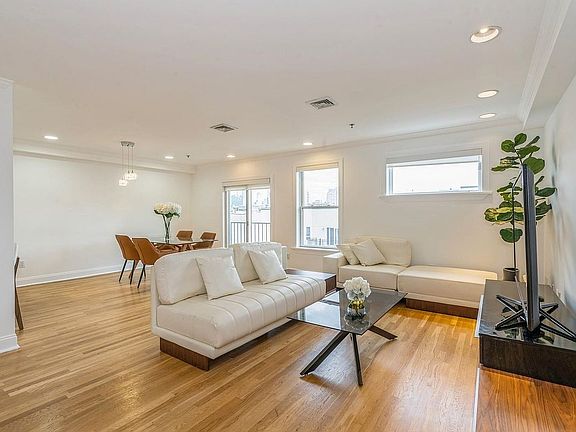 Welcome to this gorgeous 2b/2b penthouse unit located in downtown of Hoboken. The unit offers spectacular hardwood floors throughout, gourmet kitchen with granite counter-tops, stainless-steel appliances, wine fridge, breakfast bar and recently updated water heater. Seeing through the top brand windows, you can enjoy the New York skyline from every room. Isolated from the noise downstairs, this courtyard-east facing top floor unit is also showered in natural light all year round. Master bedroom features a walk-in-closet and Jacuzzi tub. Juliette balcony, Nest controlled heat and central air, side by side washer dryer room in unit and one deeded on-site garage parking included. The building is also equipped with an elevator, just a block away from the bus station to New York, easy access to the Light rails and 10 mins walks from the Path station. There is also a daycare right below the building. There couldn’t be more you can ask for.