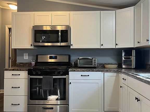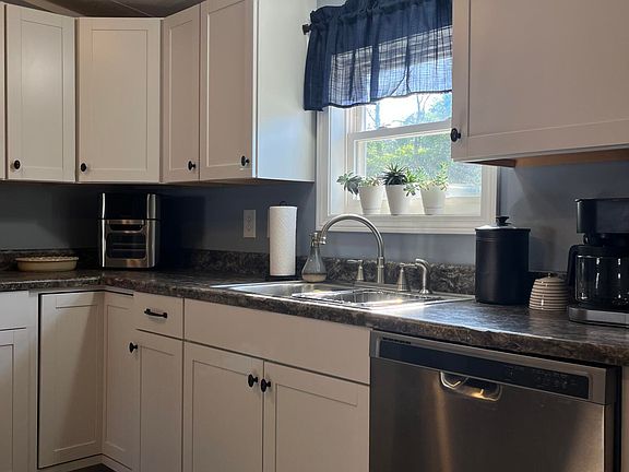 Spacious backyardStainless steel appliancesTiled showerWhite cabinetsModern eat in kitchen