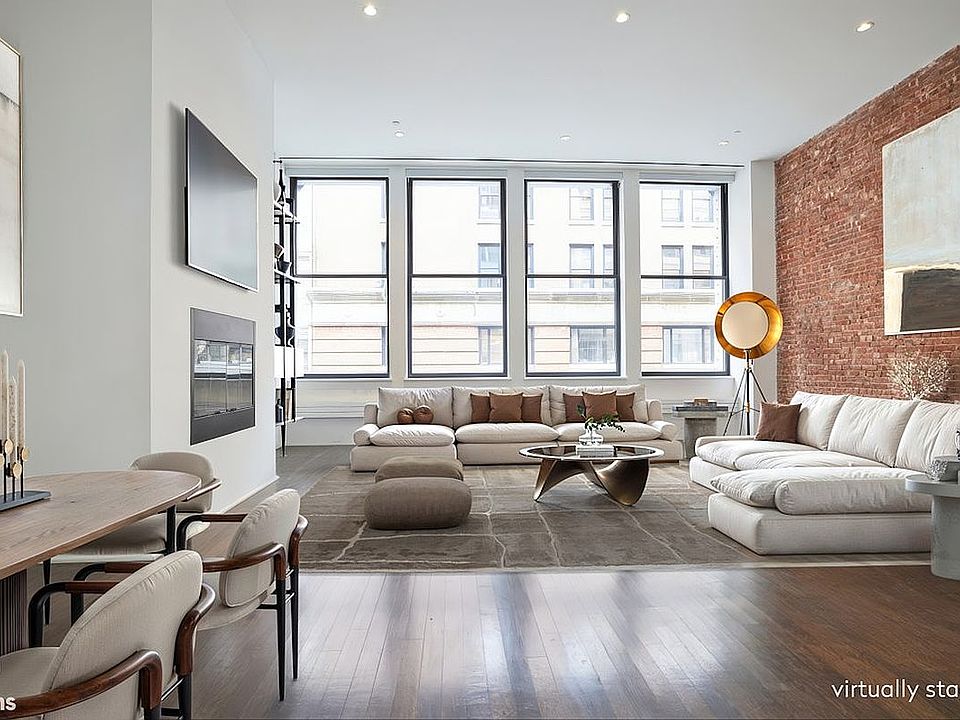 Enjoy soaring 13" ceilings in this 1,742sqft 2 bedroom, 2 bath Condo loft on one of SoHo's premiere cobblestone streets. The oversized square living room features an exposed brick wall, floating gas fireplace, 4 soaring windows overlooking Greene street, a spacious pantry, and is open to a well-appointed kitchen with Sub-Zero, Miele, and Fisher & Paykel stainless steel appliances.