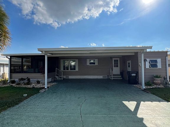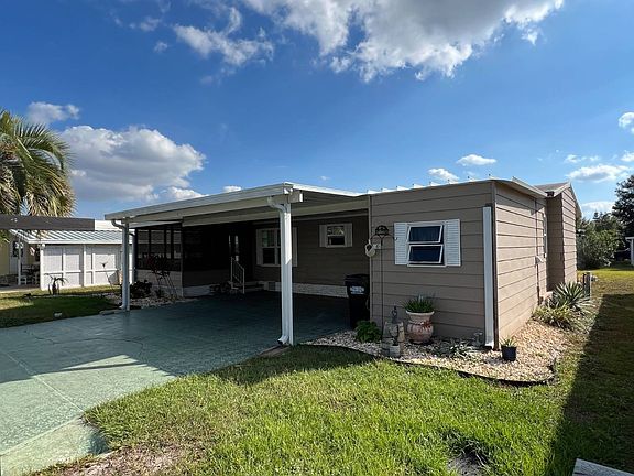 Discover this charming partially furnished home. This home comes with brand-new stainless-steel appliances. AC is only 3 years old. Spacious living room and dedicated dining space. Large closets in both bedrooms plus generous storage shed for all your storage needs. Enjoy a spacious Florida room for relaxing and a double carport for convenient parking. This home gives you access to a relaxed, resort-style lifestyle. Enjoy the beautifully maintained 18-hole golf course. One-year FREE golf membership with your purchase! Unwind at the heated pool and spa overlooking beautiful Lake Henry. The community also features an on-site restaurant and pub. Residents also enjoy a variety of recreational activities including tennis, pickleball, and shuffleboard. Call today to schedule a tour!