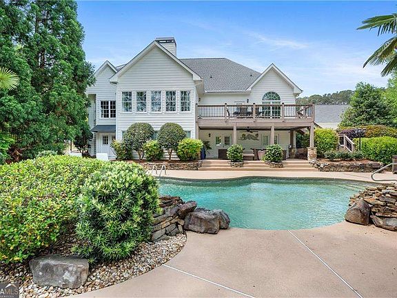 Nestled on a serene 1.6-acre cul-de-sac lot with NO HOA, this beautifully updated and remodeled lakefront estate offers unparalleled luxury and privacy. Park over 6 cars with the attached 3 car garage plus the custom detached specialty garage. Detached garage measures 43x28 with a 16' ceiling and is perfect for your RV, boat, or specialty car collection! Fully stocked lake with platform dock just steps from your patio! A stunning resort-style saltwater pool with an entertaining bar and half basketball court completes this outdoor paradise! Heading inside, this expansive master-on-the-main floorplan features five bedrooms, including a luxurious primary suite on the main level with a fireside sitting room, custom closet and beautifully updated spa-like bathroom, two additional main level bedrooms, two laundry rooms, a potential in-law suite in the finished basement and a unique teen suite upstairs, providing ample space for family and guests. Aside from the recently renovated master bathroom, the kitchen has also been updated and boasts both beauty and functionality as it flows seamlessly to the two story great room and sunroom! Descending below, the finished basement is an entertainer's dream and a perfect floorplan for a potential in-law's suite featuring a secondary kitchen plus a spacious family room, panic room, second laundry room, home office, billiards room and additional potential bedroom opportunities! Excellent location- just minutes from Milton and Alpharetta! Zoned for award winning Creekview HS district!