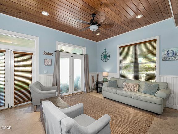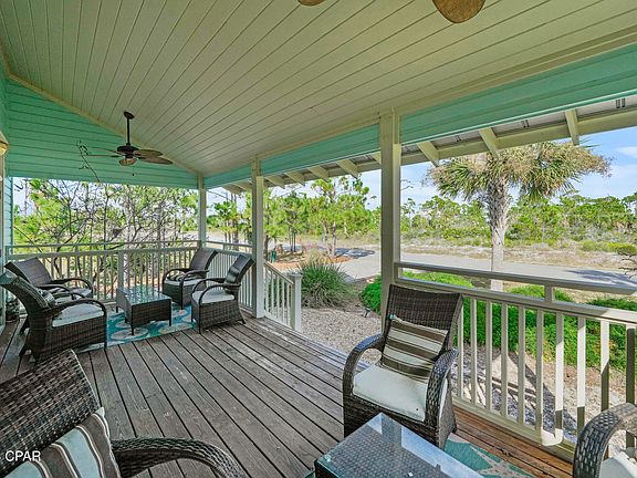 Discover the perfect blend of southern living & coastal cottage in this custom-built 4BR, 3BA home nestled near the stunning St Joseph State Park. The first thing you're greeted with is the expansive porches for sipping tea with family & friends. As you ascend inside this dream open floor plan, you'll immediately be drawn into the warmth & charm this coastal retreat features with elegant travertine tile, raised wood ceilings, & lots of space for creating unforgettable moments with family & friends. The fully-equipped kitchen features granite countertops a center island & has everything you need for culinary creations and a private outdoor gas grill awaits your grilling adventures. The expansive main bedroom features an en-suite bathroom with a standalone shower, while the second bedroom boasts direct access to one of the outdoor decks. The third bedroom shares a full bathroom with the second bedroom. Perfect for larger groups, the fourth bedroom is outfitted with two bunk beds and two twin sleeper sofas, plus an attached full bathroom with a tub/shower combination. Enjoy the gulf breezes & peaceful surroundings from any of the 3 spacious porches. Situated in the private gated community of Sunset Pointe, you'll enjoy convenient access to the shared amenities including beach access, a community outdoor pool, and serene natural conservation areas with scenic boardwalks. This home is perfect for those seeking both relaxation and adventure. Nearby, Cape San Blas beckons outdoor enthusiasts with its array of activities, from kayaking and paddleboarding to biking along breathtaking coastal trails. Discover the enchanting town of Port St. Joe, where charming shops and delightful local dining await, all set against a backdrop of rich history that enhances the area's allure. Don't miss the opportunity to make this charming coastal retreat your own. Explore the 3D tour & schedule a private showing today & start living the Beach Life!!!