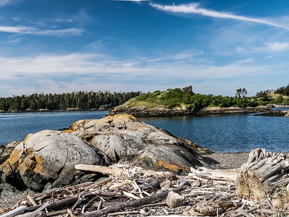 Move right in and enjoy your low bank beach, breathtaking southwestern views of Bay, Straits and beyond to the Olympic Mountains. This property includes .64 of common w/f area (tp 241421008) along with a 4-way shared good producing well. The 3 bdrm home comes with an 800 sq.ft. detached garage; check the 100 year old barn/grain building bordering a bountiful orchard of fruit trees on backside of this property. Truly, one of a kind!