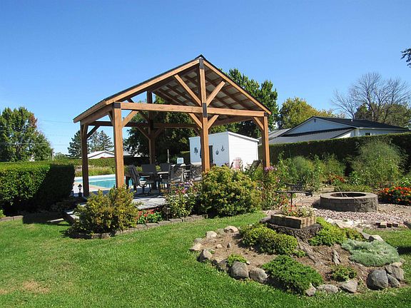 Inground poolUpstairs bonus roomCovered front porchWood floorsExceptional landscapingExposed beamsBrand new pergola