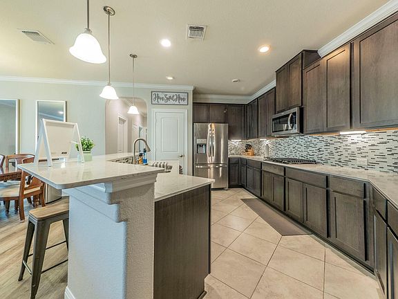 Located at 109 Holstein St #107, Hutto, TX 78634, this beautifully maintained single-family home in Williamson County offers modern comfort and thoughtful design throughout. The kitchen serves as the heart of the home, featuring stone countertops, shaker cabinets with crown molding, and a stylish backsplash that ties the space together. A large kitchen island and kitchen bar provide generous seating and prep space, while the double oven and stovetop make it easy to cook and entertain with ease. The living room, accented with crown molding, creates an inviting space to relax or gather with loved ones. The primary bathroom offers a touch of luxury with its tiled walk-in shower and double vanity, evoking a spa-like atmosphere. With three bedrooms, two bathrooms, and a two-car garage, this 2018-built home also features a patio and fenced backyard—perfect for outdoor enjoyment. Move-in ready and full of charm, this property is a wonderful opportunity to experience stylish, comfortable living in the heart of Hutto. Discounted rate options and no lender fee future refinancing may be available for qualified buyers of this home