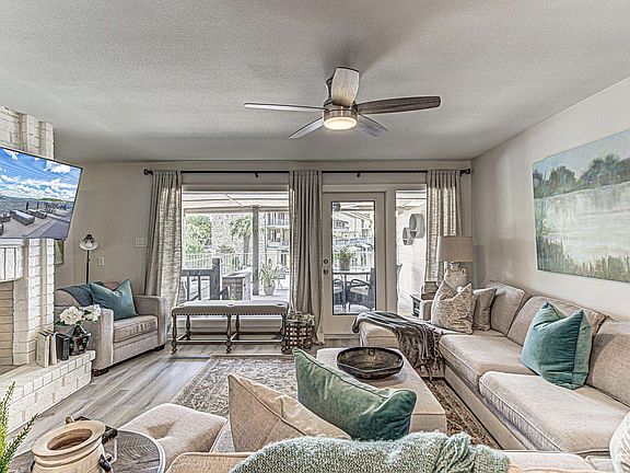 Welcome to 109 Island Drive, a stunning townhouse nestled in the serene setting of Horseshoe Bay, TX. East Facing Townhome on Lake LBJ. This beautifully renovated 1,737 square foot home offers a blend of modern luxury and timeless style. With 3 spacious bedrooms and 3.5 bathrooms, this property is perfect for those seeking comfort and elegance. The heart of this home is its open kitchen, equipped with stainless steel appliances, an electric oven, dishwasher, refrigerator, and a convenient breakfast bar. The kitchen's sleek design is complemented by a pantry and offers plenty of space for culinary adventures. Enjoy entertaining in the expansive living areas, featuring floor-to-ceiling and oversized windows that flood the space with natural light, emphasizing the eastern exposure. For your fur babies a custom nook under the stairs. The residence boasts recessed lighting and elegant chandeliers, enhancing its sophisticated ambiance. The living space includes vinyl and carpet floors, adding to the cozy atmosphere. The comfort extends outdoors with a private patio, balcony, and a deck, perfect for enjoying the tranquil surroundings. The primary ensuite bathroom features a separate shower and double sinks, while custom closets offer ample storage. Additional amenities include a fireplace, central heating and air conditioning, Casita with own entrance and has access to the Boat dock, along with full bathroom. With access to your own personal Boat dock , lift and slip and outdoor storage.