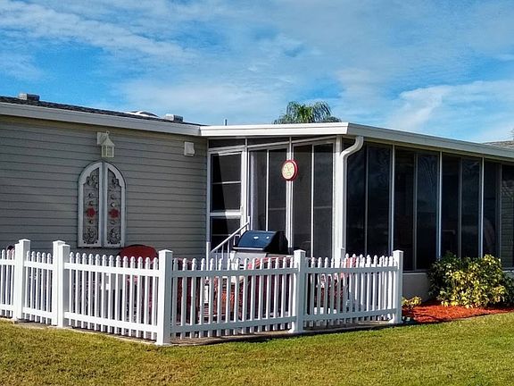 Magnificent 3 bedroom home in the Gardens comes turnkey and with a 14' x 20' GARAGE! Double driveway. Lots of custom features by owner adorn this bright home...such as floor to ceiling windows in a 10' x 22' tiled floor lanai, transom window in Living Room, and a 14' x 14' fenced in patio! Located on a corner lot...this tastefully furnished home is open concept with a split floor plan. Eat in kitchen, large laundry room featuring custom storage cabinets and laundry tub and a master suite with 2 walk in closets! Dining room area includes built in buffet. 1352 SF plus 308 SF lanai. 2013 new siding, gutters & downspouts, deluxe painted driveway, irrigation system. Lot rent $704 (+ taxes) includes Lawn maintenance, CABLE & INTERNET!!! The Gardens is premier 55+ community and is pet friendly and has the largest pool in the county! Available in March 2019. Call today for an appointment!