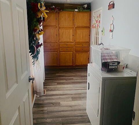 Brick homeVinyl privacy fenceCovered patioStorage buildingKitchen dining comboLarge utility room