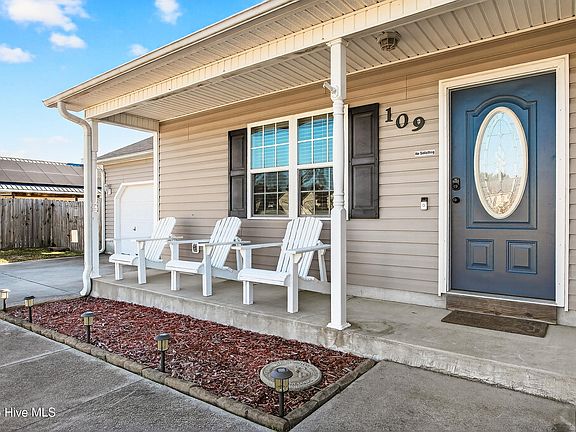 Welcome to 109 Jenna Rea Road in the Jacks Branch subdivision of Hubert! This 3 bed, 2 bath home sits on a quiet cul-de-sac and offers 1,296 sq ft with a bright, open feel thanks to the vaulted ceilings in the living room. The bedrooms are all a comfortable size, and the primary has its own bathroom for added convenience. Outside, you'll find a fully fenced backyard with a wood privacy fence—great for pets, get-togethers, or simply having your own space to unwind. A solid, well-loved home in a great location! Come check it out!