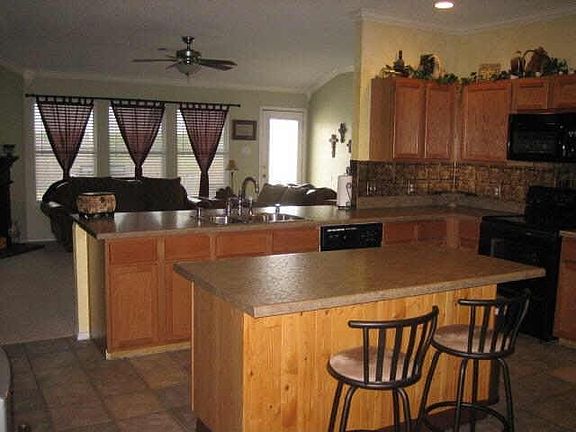 Large inviting open floor plan with split bedrooms with large closets, study or 5th bedroom. Maintained home with care & added the extras, faux finishes, solar screens, crown molding, RV Boat parking, outside security lights, electric under the eaves, 15 X 40 patio, storm door, recessed lighting and enough electric in the garage for the handiest of men! Fireplace with propane, upgraded kitchen counter tops, ceiling fans, & window treatments.